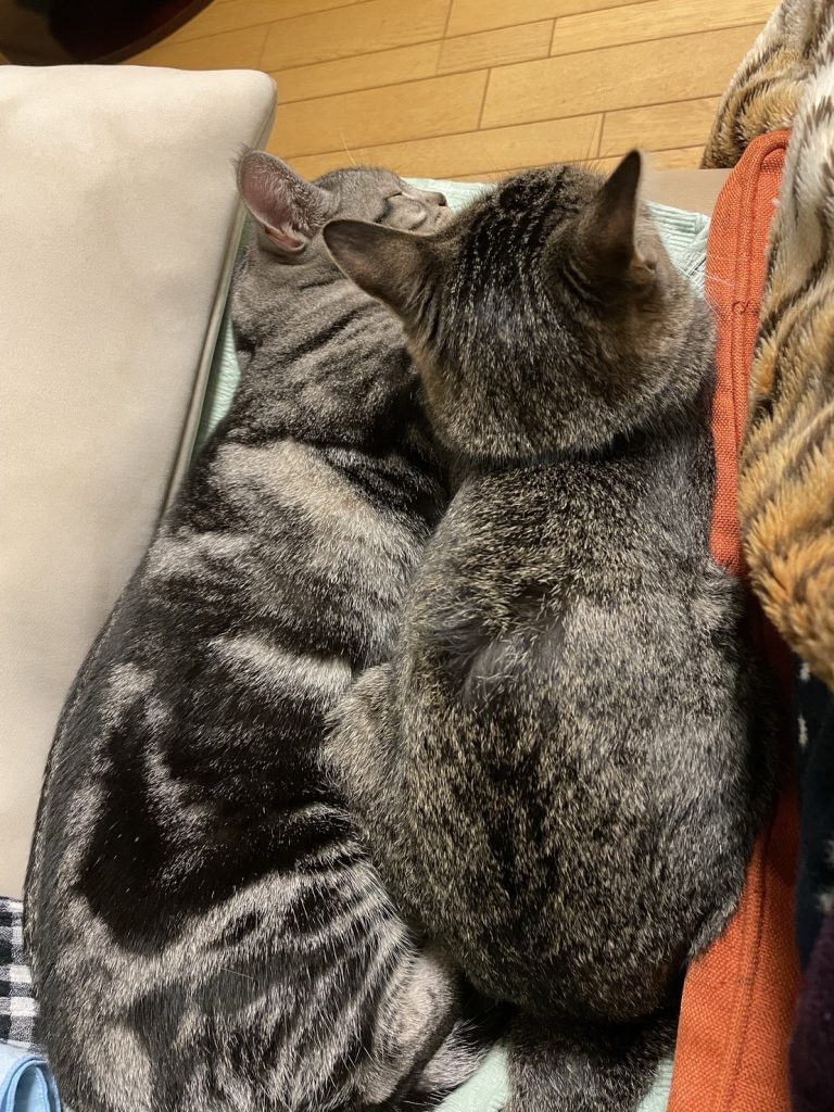 今では、甘えん坊なオス猫と、元保護猫の甘えん坊なメス猫の2匹と一緒に暮らしています。